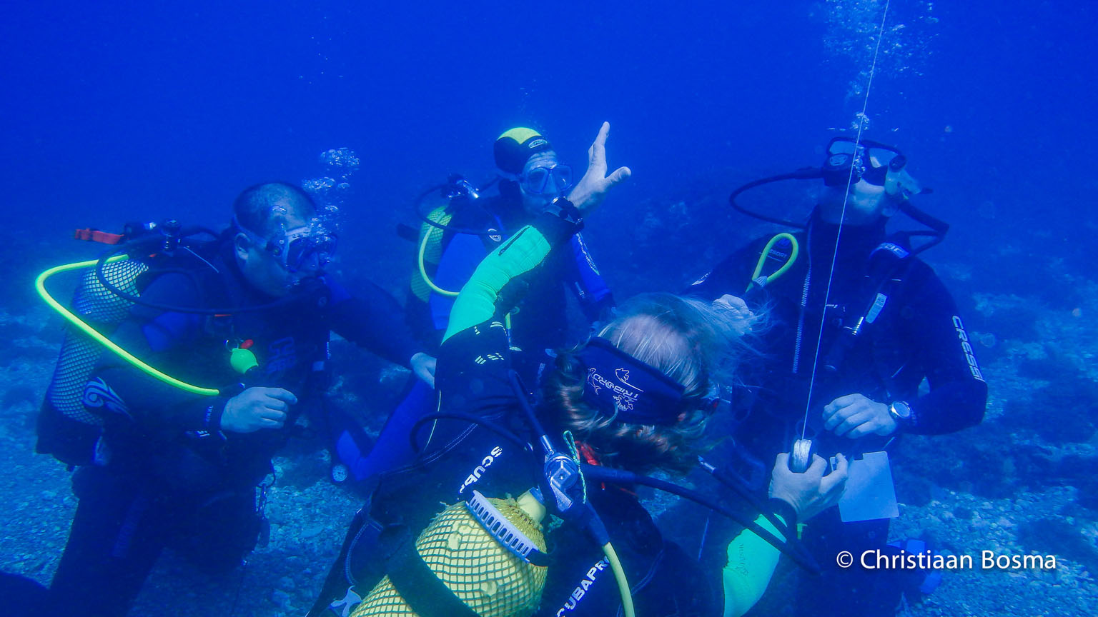 Nadat ze klaar waren met de oefening, kwamen we allemaal bovenwater. We wilden al uit het water stappen alleen vertelde de andere onderwaterfotograaf dat hij nog een octopus had gezien. Ik wilde deze natuurlijk graag fotograferen en vroegen we beiden om toestemming bij de instructeur om nog even onderwater te gaan om foto’s te nemen. Deze toestemming kregen we en de andere duiker wist precies waar het dier zat. Helaas zat de octopus onder een paar rotsen en kon ik geen geslaagde foto maken.